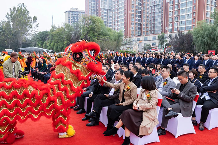 吉時已至,瑞獅迎祥。在全場嘉賓矚目下,集團董事長楚科奇、總經理王海軍共同為祥獅點睛。一點朱砂,喚醒了祥獅的靈氣與活力,也預示著榮盛事業如旭日東升,必將基業長青、宏圖大展!隨后,祥獅騰空躍起,輾轉騰挪,以排山倒海之勢舞動全場,將現場氣氛推向了一個小高潮。
