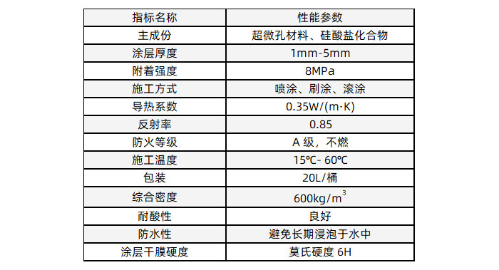 3、涂料可涂刷在所有的無機材料上,如金屬、磚塊、混泥土、木塊、玻璃纖維,并且涂層不燃,防火等級為 A 級。